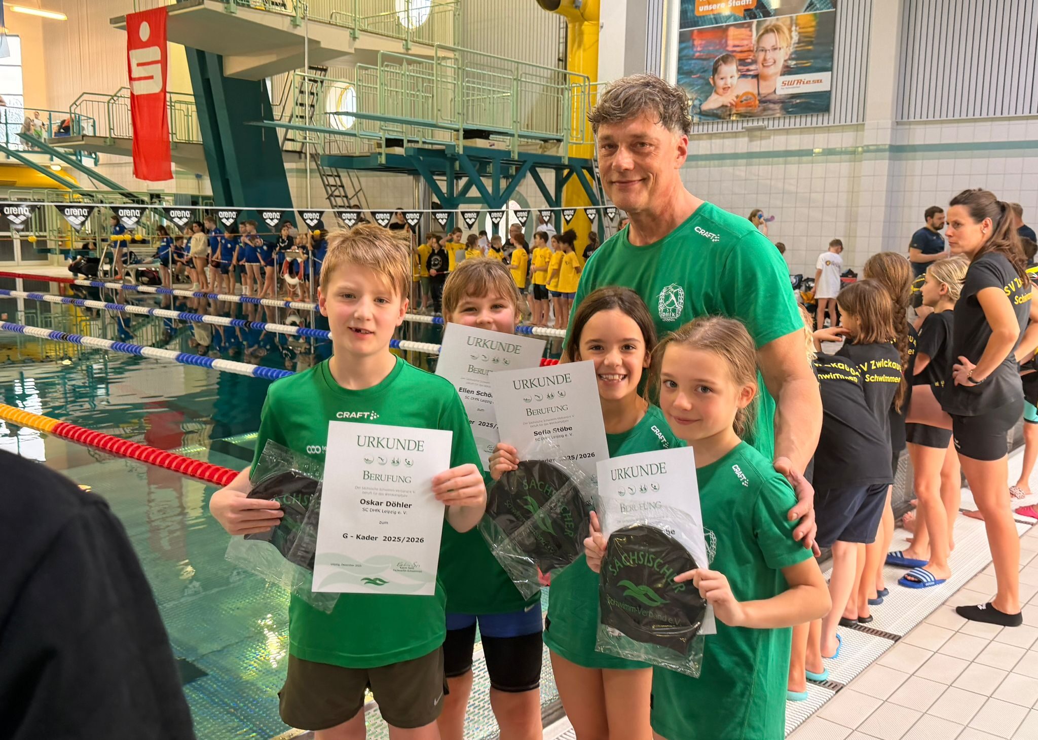 Herzlichen Glückwunsch an Charlotte Heiche, Sofia Stöbe, Ellen Schönberg und Oskar Döhler (Jahrgänge 2016 und 2017) zur Aufnahme in den G-Kader des Sächsischen Schwimm-Verbandes für die Saison 2025/2026!